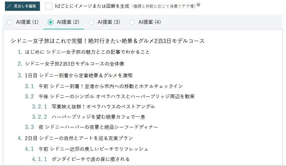 ↓タイトル案・構成案はいくつか提案してくれるから選ぶだけ。