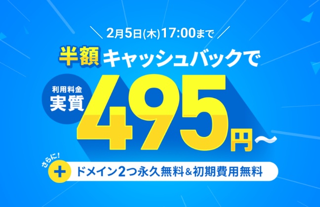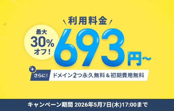 - ドメイン:無料(キャンペーン中です)
