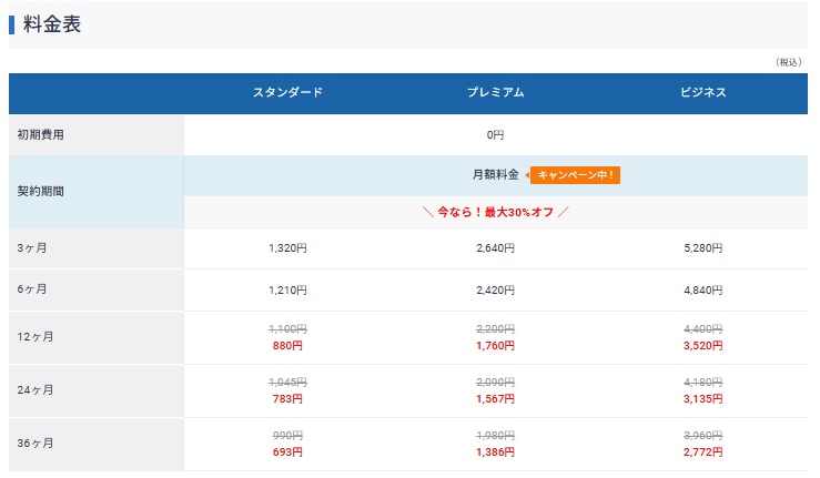 12ヶ月以上の契約で月額料が最大30%OFF
