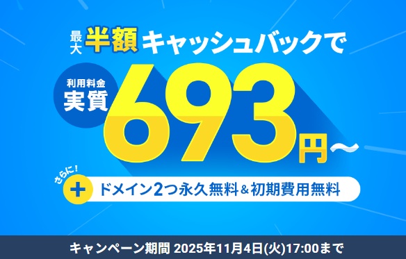 エックスサーバーが2025年11月4日17時まで開催しているキャッシュバックキャンペーンの